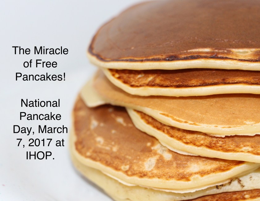 Tuesday, March 7, 2017 is National Pancake Day at IHOP restaurants and they are giving away free short stacks buttermilk pancakes from 7 am until 7 pm.  Here is the answer for the “What’s for dinner?” question.  And the best part is that IHOP is to helping to raise money for the Children’s Miracle Networks!