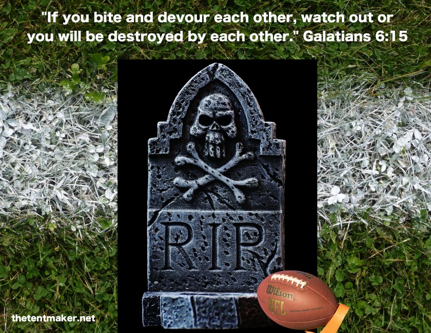“If you bite and devour each other, watch out or you will be destroyed by each other.” Galatians 6:15