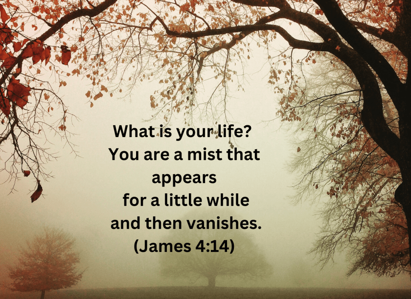 What is your life? You are a mist that appears for a little while and then vanishes. (James 4:14)