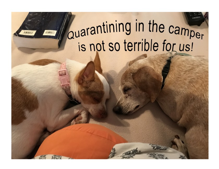 These past four weeks of being quarantined in our camper have been challenging at times, frustrating at times, and pure hell at other times.  We are not only victims of the virus but the weather, laundry, and other essential items we take for granted when living in a home.  With that said, we are still exceedingly blessed and grateful to even have a camper to hunker down inside!